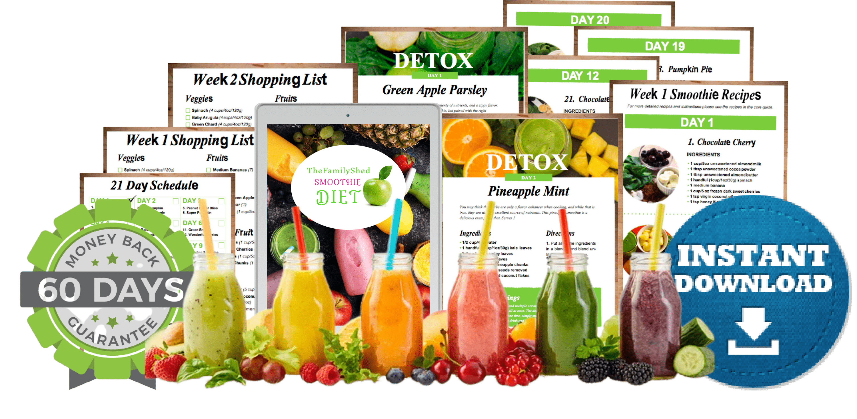 If you’re anything like me, you wanna get right to the good stuff! We designed this guide to be an easy reference you can print out and start using right away without needing to read the longer core guide. It’s a condensed version of the core guide that contains the 3-week schedule, shopping lists, prep guide, and smoothie recipes. This is a fast track “to do” list that will help you start enjoying the benefits of the program from the very first instant you download it.