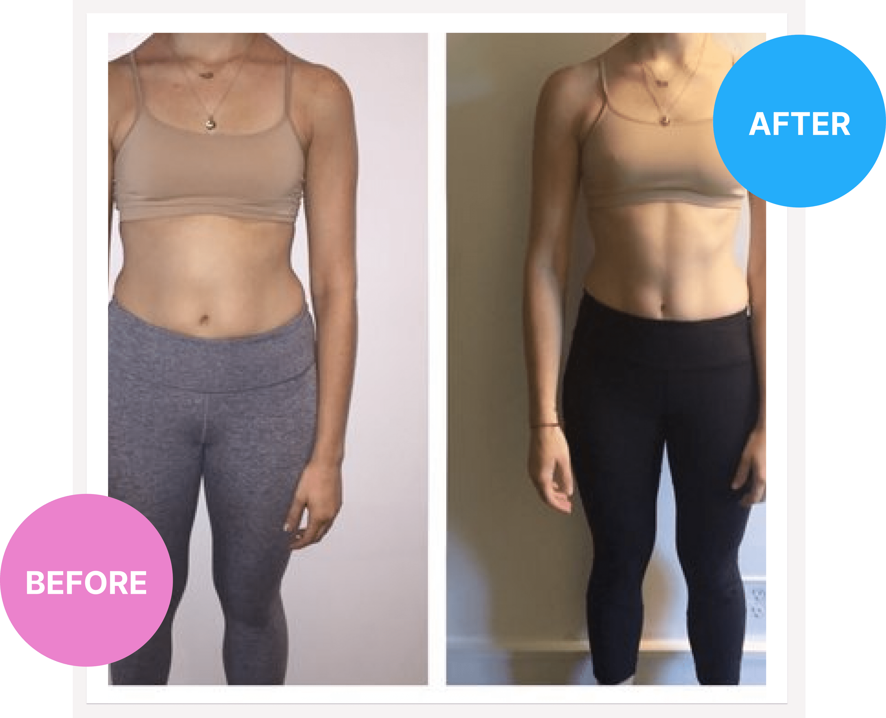 "I’ve been trying forever to lose the last 10-15 lbs. and tone up and that’s exactly what happened so I am very happy. I feel great about myself, I don’t find myself holding in my belly anymore and feel confident about myself and people have noticed that about me too...and my love handles are gone! I couldn’t be happier with this whole program and I definitely recommend this to anyone looking to lose a little or lose a lot.”